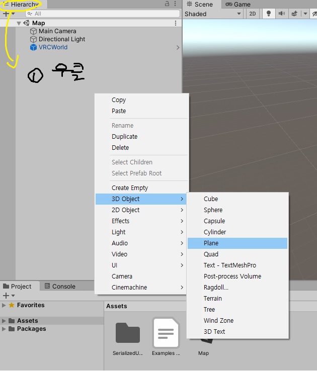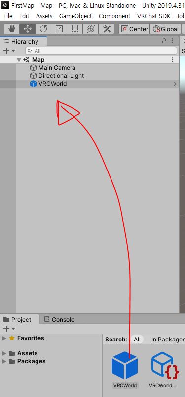 다음은 VRChat 맵의 가장 필수적인 VRCWorld 프리팹을 하이어라키 창에 할당할겁니다.