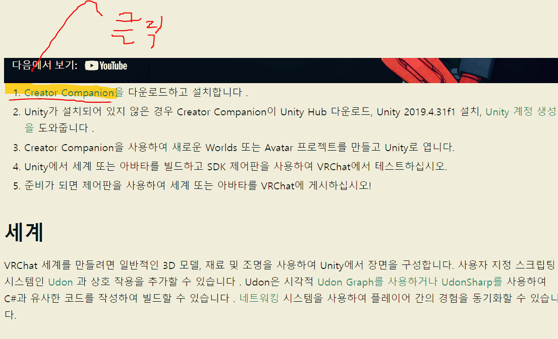 VRChat의 공식 홈페이지 가이드를 따라하는 것입니다.