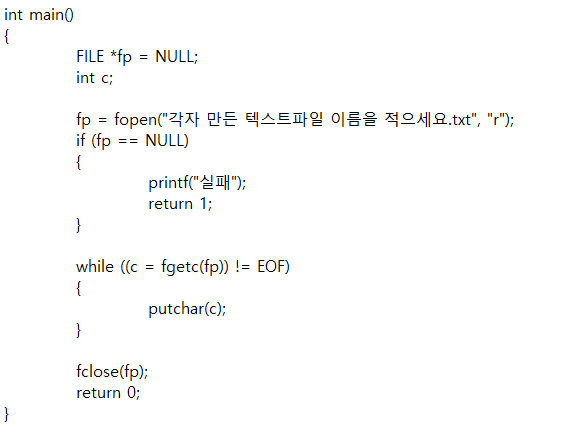 C언어를 통해 코드로 텍스트 파일을 읽어서 여는 코드이다.